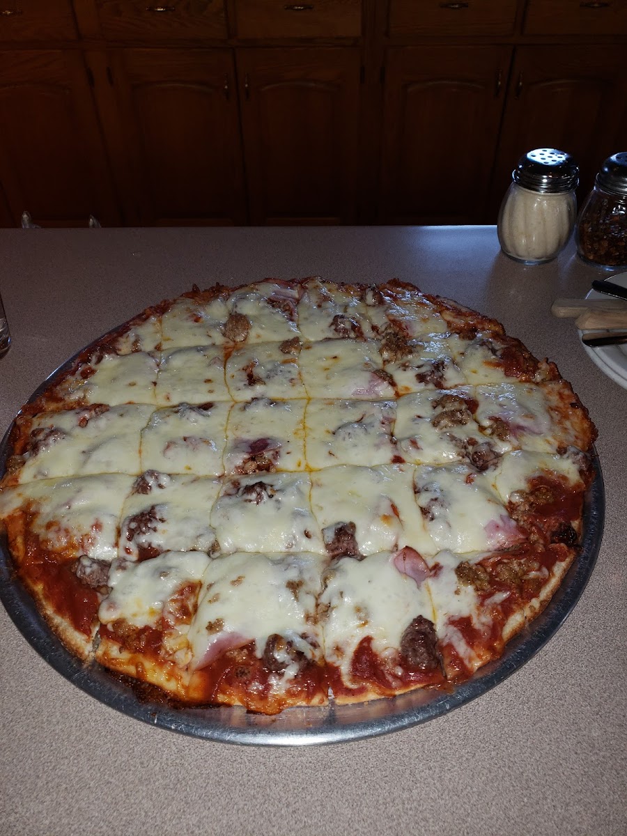 We ordered 2 large thin crust pizzas, Taco and Super Special. Both pizzas had large amounts of toppings and were cooked perfectly. Interesting atmosphere, as the building is located right next to the slow-moving railroad system that goes the the middle of town. Service was great and the staff was super friendly.